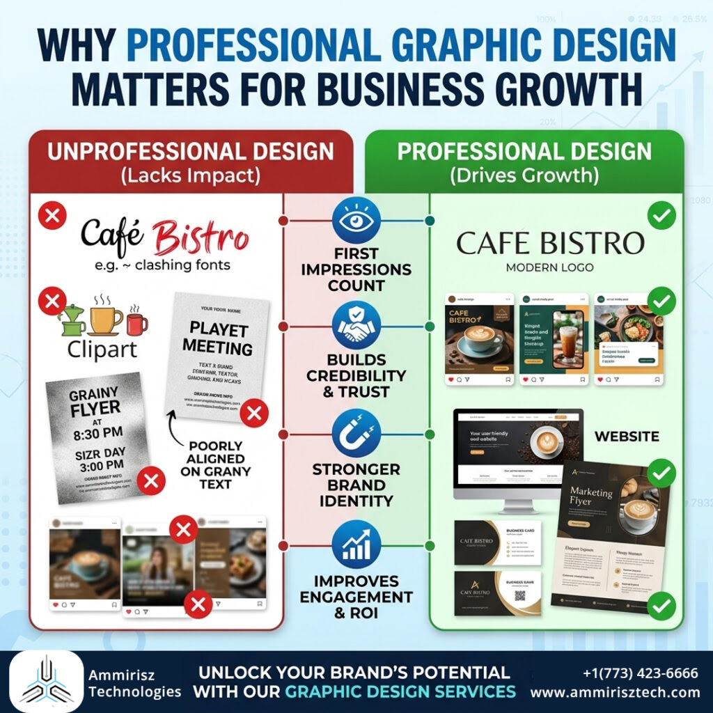 Businesses that invest in professional design create stronger branding, better customer recognition, and higher marketing ROI.At Ammirisz Technologies, we help businesses create powerful visual identities that attract customers and drive growth.
